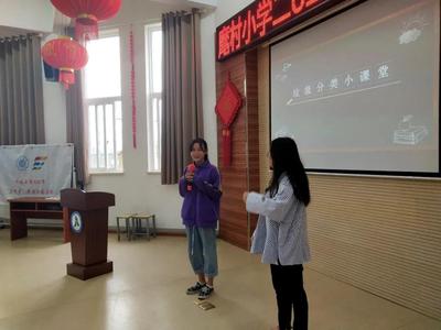 在江都区丁沟中心小学及麾村中心小学,实践团为学生们系统地讲解了垃圾分类的方法,强调了垃圾分类对于环保的意义,并鼓励小学生们分享自己对于垃圾分类的看法,寓教于乐,让小学生们将环保意识扎根内心。与此同时,实践团前往丁沟镇乔河村和麾东村,指导当地村民进行简单的垃圾分类,并通过讲解“生物多样性”引导他们合理放生野生动物,以此增强居民关爱自然、保护生物多样性的理念,形成全民参与环境保护的良好社会风气。同时,为将环保意识传递给更多人,实践团录制了以“水资源保护”和“生物多样性”为主题的环保宣传视频,上传至B站等网络新媒体平台,转发至各类学生和家长群,供学生与家长们观看学习,增加宣传面的广度,以让更多人知晓环保的意义,并参与进环保。