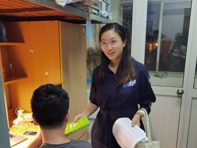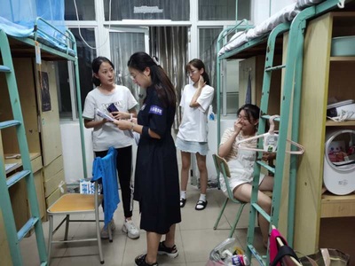 结束了两天的迎新工作,每位工作人员都非常疲累。作为环境院2020级辅导员,金意倩老师和杨铮老师顾不上休息便来到学生公寓进行探访,关心学生报到情况和思想动态,并向学生表示8x8x