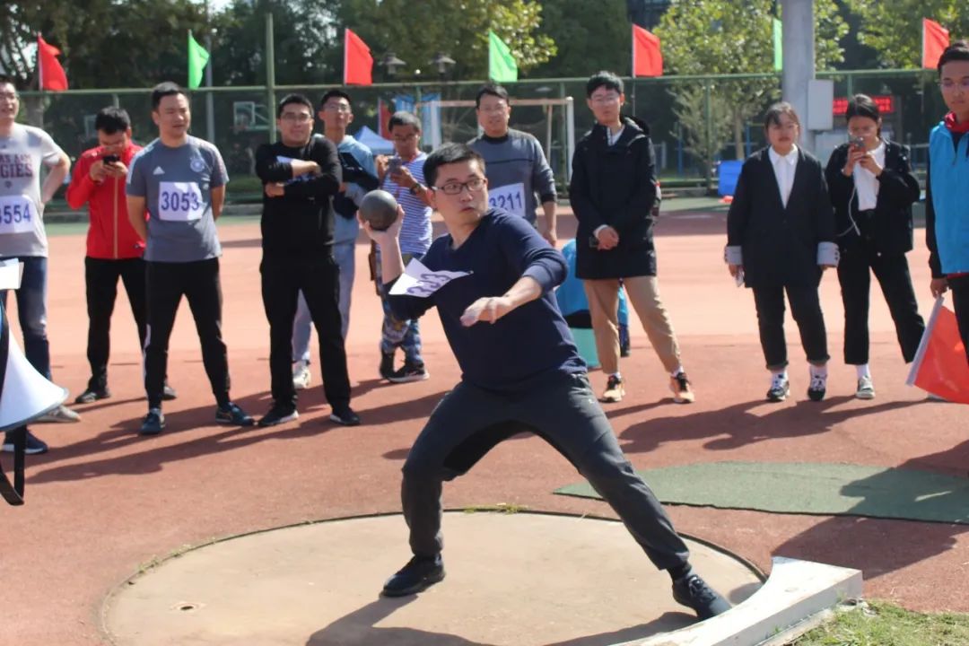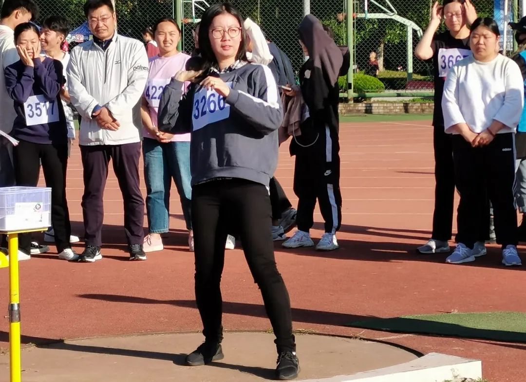 与此同时,在赛场的另一边,教工女子铅球比赛也正如火如荼的进行着。金意倩老师和王洵老师参加了此次比赛。沉重的铅球从她们手上抛出,带出一道道优美的弧线,在草地上留下奋斗的痕迹。