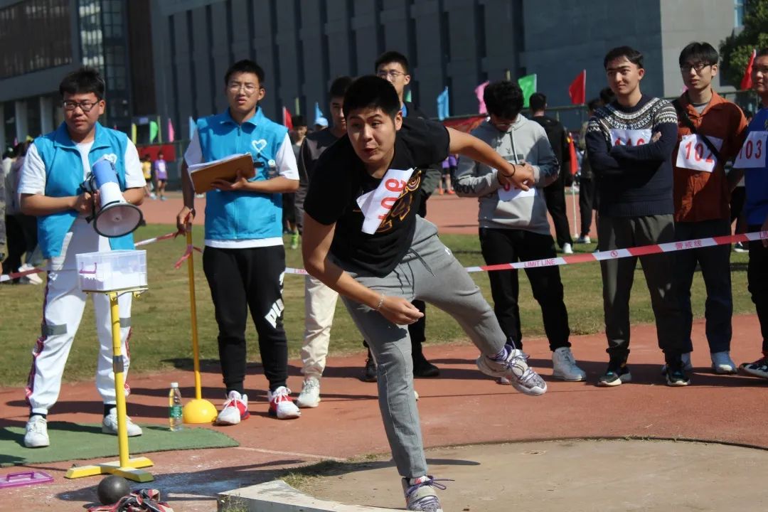 男子铅球决赛中,环境院运动员窦溱瑀同学、万凯琦同学、徐启晨同学为8x8x 争光。伴着高挥的臂膀,铅球从手中划出圆滑的曲线,在草地上砸出了扎实的坑洼。其中窦溱瑀同学凭借高超的投掷本领荣获了第三名的好成绩。