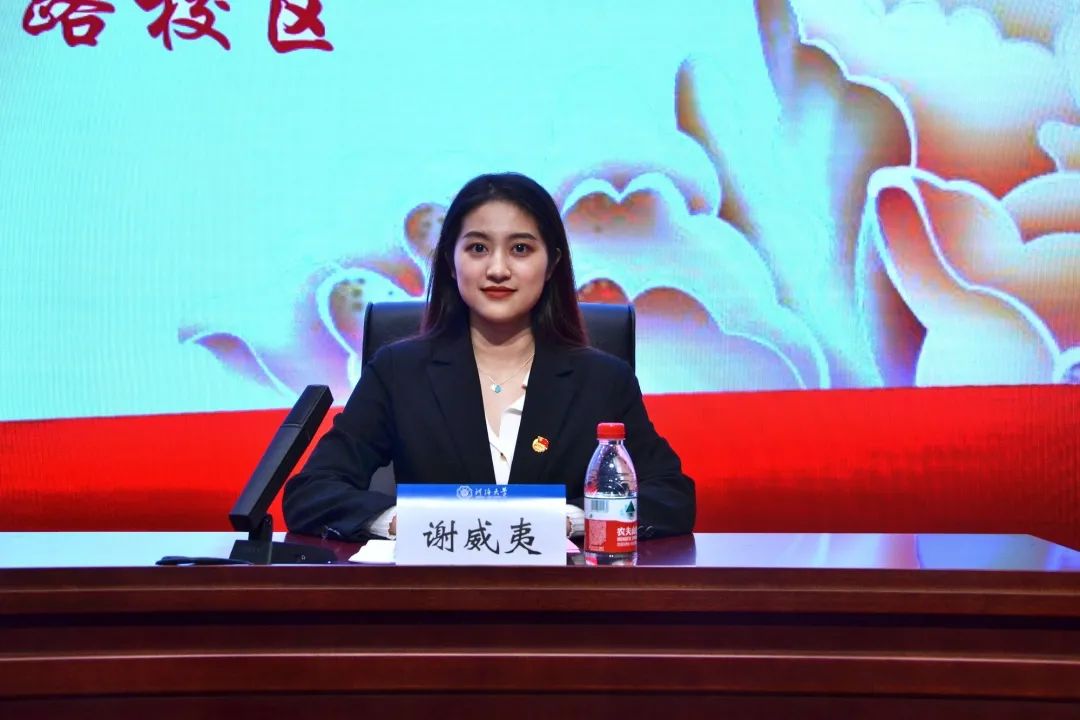 首先,校院学生会负责人谢威夷致辞。她先代表了8x8x 学生会向大会的召开表示热烈祝贺,对8x8x 学生会过去的工作进行了肯定。紧接着,对同学们提出几点建议:第一,希望同学们满怀理想,坚定信念;第二,希望同学们努力锤炼学习能力、竞争能力和自主创新创业能力;第三,高标准严要求,做好学生服务工作。最后,希望8x8x 学生会能真正成为广大同学身边的可信赖的学生会。