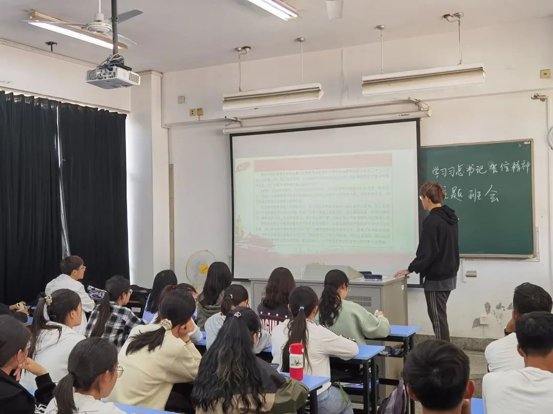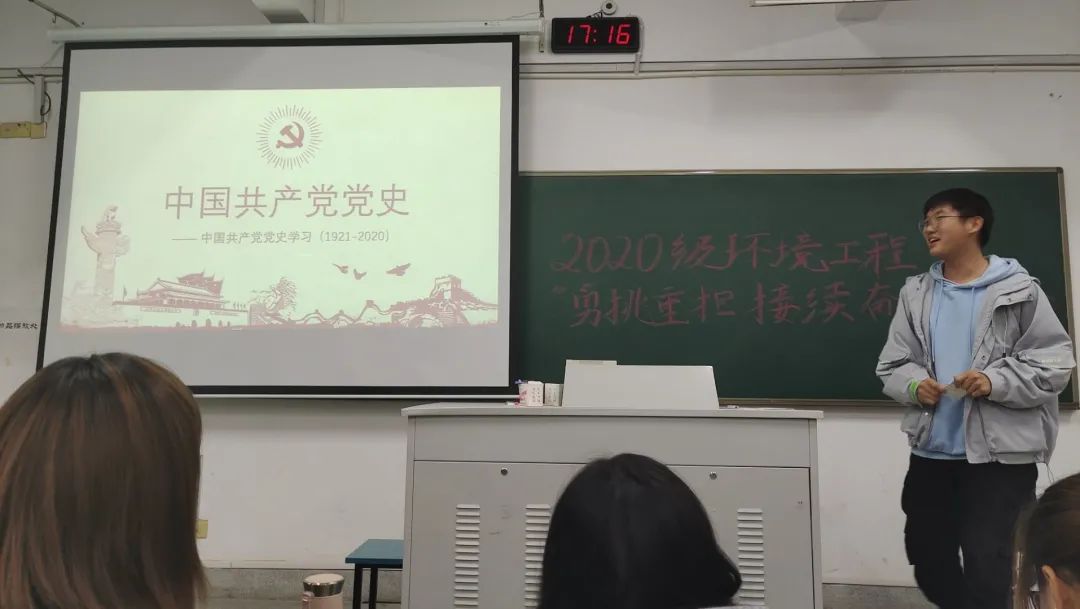 这是2020级环工二班第一次团日活动,在文艺委员郭嘉轩同学的主持下,习近平总书记致辞和贺信精神学习宣传主题班会顺利开展。