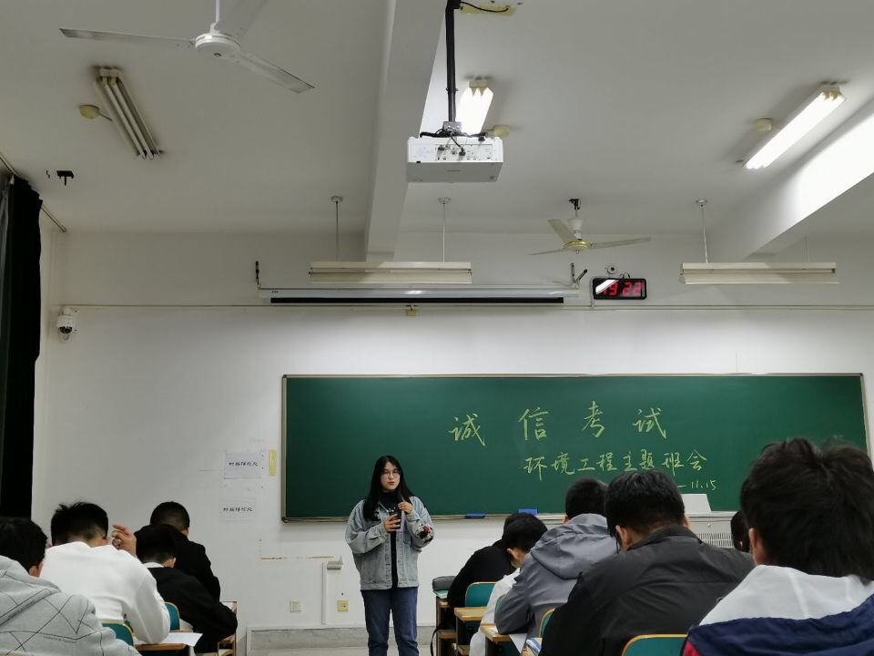 期中考试前期,班长提醒同学们考试的注意事项并再三强调了大学生应该遵守的考场纪律。紧接着,班长也汇报了环工一班上课以及晚自习出勤率和迟到情况,并提出将用奖惩制度来加强规范。