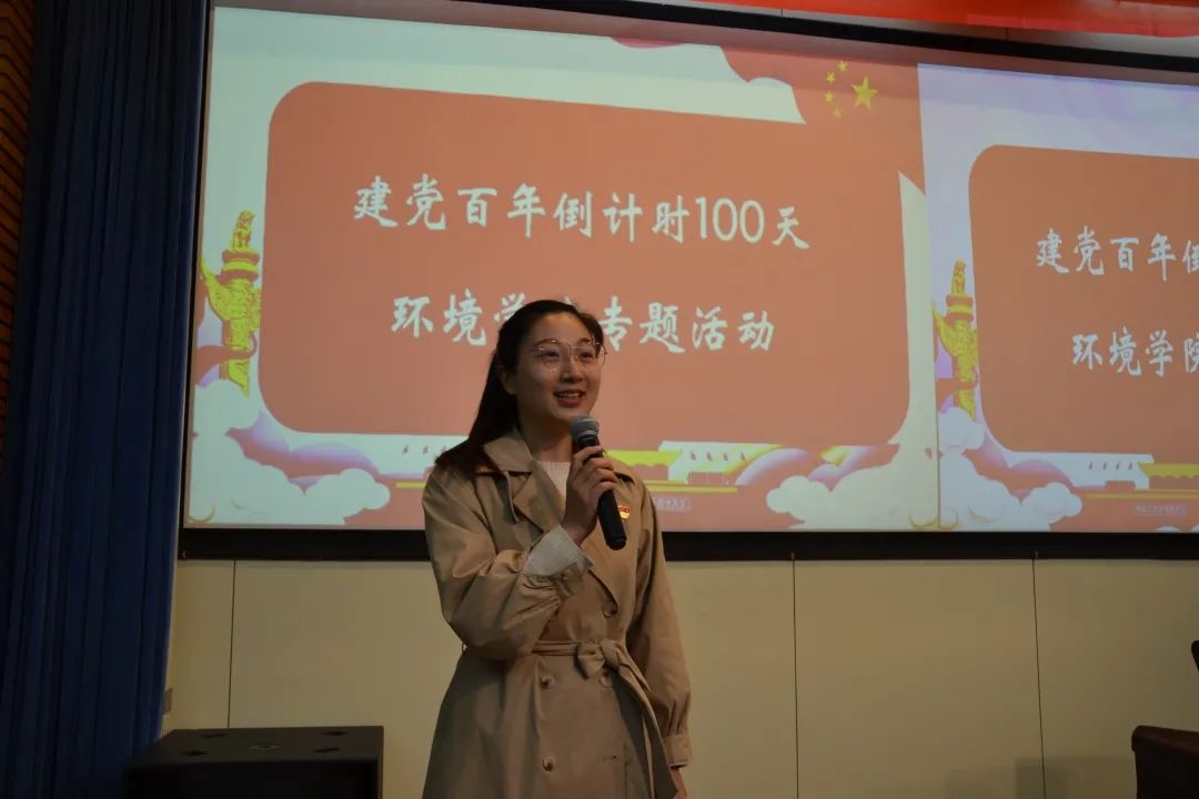 本科生环工党支部书记扈雅璐老师从中国共产党的诞生对中华民族、对世界发展的作用讲起,向同学们分享了党的发展史,并结合戍边官兵和抗疫英雄们的伟大事迹阐述了“红船”精神,鼓舞在场的党员、预备党员和入党积极分子学习红色党史,发扬红色传统,传承红色基因,延续中国共产党的精神血脉,奋勇前进。