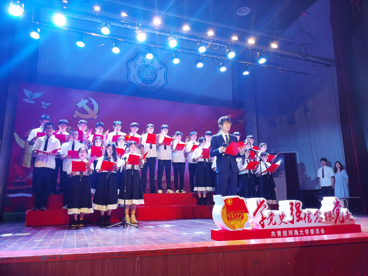 党委书记笪学军致辞。笪书记带领师生回顾了中国共产党的光荣历史,同时勉励同学们砥砺前行,以昂扬姿态奋力开启新征程,以优异的成绩迎接建党一百周年!