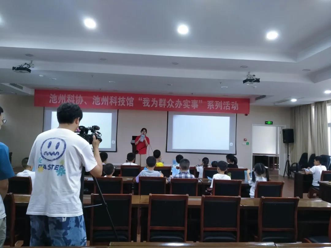 7月10日,实践团成员分别在池州市图书馆和科技馆开展了环保趣味科普活动。活动伊始,成员们向参与活动的小朋友与家长发放了精心制作的宣传手册。接着,杨萍同学就我国及世界环保现状入手,向小朋友们介绍了当今面临的三个严重环境问题,并呼吁少年儿童保护环境爱护地球。互动环节,团队成员带领指导小朋友们完成了用废旧报纸制作的手工环保玩具,践行节能减碳理念。此次活动,小朋友们积极互动,主动回答环保问题,分享自身环保经历,实践团队帮助当地少年儿童增强了环保意识、丰富了环保知识。该活动得到了当地图书馆公众号的宣传及电视台的报道。