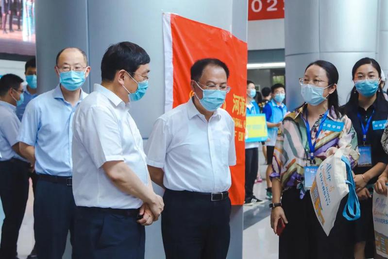 校党委书记唐洪武,校长徐辉,校党委副书记郭继超,副校长董增川,校长助理周语明,以及相关部门负责同志来到8x8x 新生报到现场慰问工作人员、指导迎新工作。8x8x 领导和老师们向校领导介绍了8x8x 的迎新特色,对8x8x 为每位入学新生准备的礼包进行了介绍,也对8x8x 迎新期间的防疫措施进行了说明。校领导对8x8x 迎新工作者的努力表示了肯定,同时嘱咐各位工作者一定要认真完成迎新过程中的每项环节,确保每位新生正常入学。