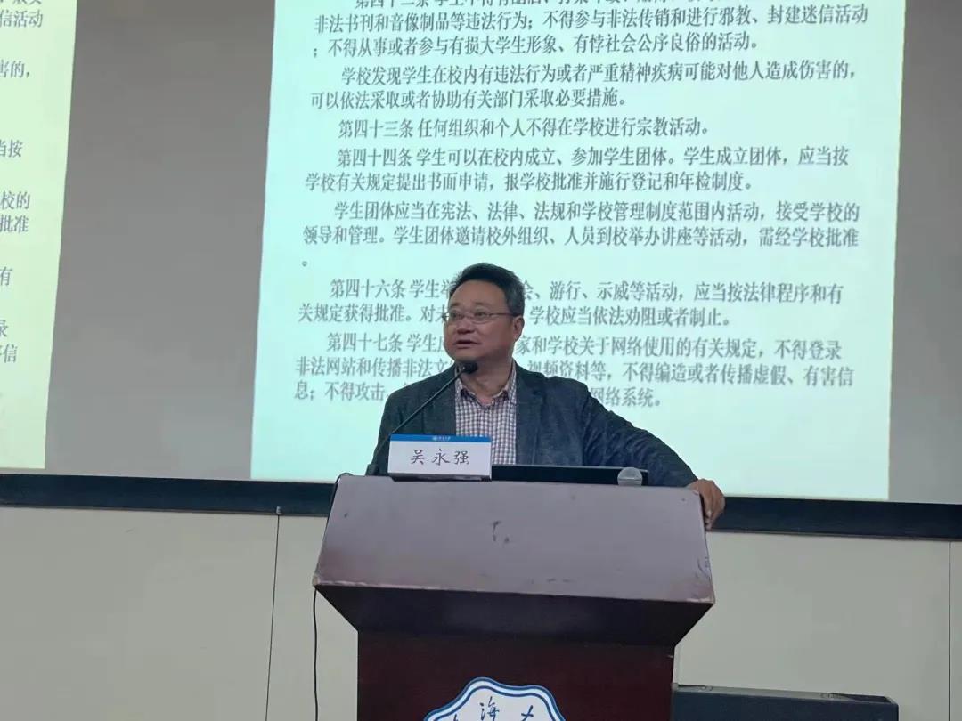 吴永强处长指出,安全不仅仅指围绕在我们身边的人身安全,还应是国家安全、消防安全、防诈安全等的有机结合。吴永强处长列举多个例子展开叙述,提高了同学们的安全意识。