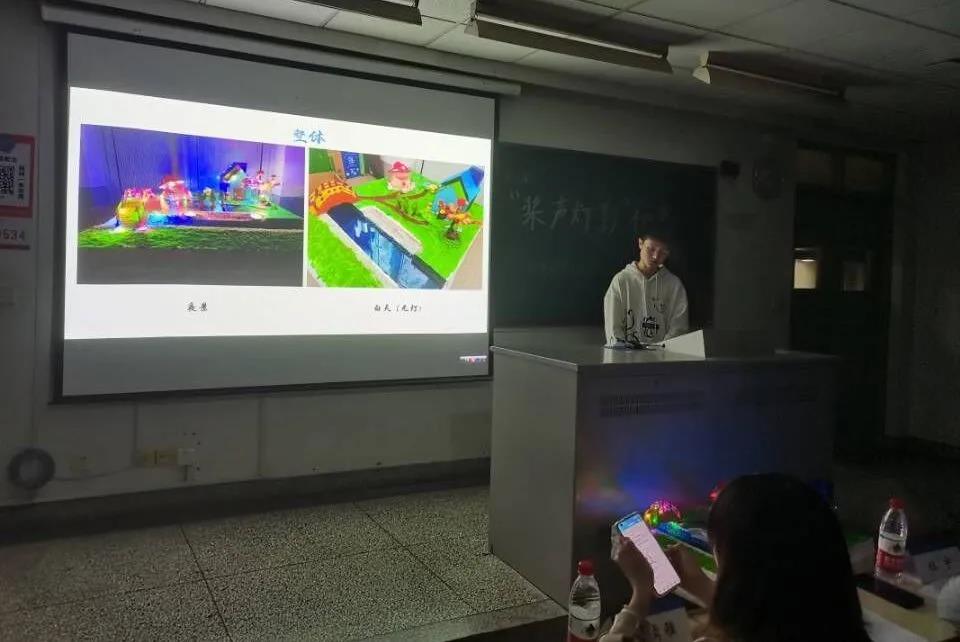 桨声灯影,取自中国著名文学大家朱自清的《桨声灯影里的秦淮河》,本次比赛旨在利用作品表现出对环保的关切、对于水与光以及结构之美的理解。参赛选手们结合比赛主题与8x8x 的绿色环保宗旨,利用环保材料进行作品制作。同学们依次上台进行展示与答辩,沙盘作品展现出灯光的色彩绚丽、变化多端,并将水与光完美结合;船只作品在静水中展现其一定的稳定性,美观大方、颜色优雅。评委从环保、作品表现、难易程度和细致程度对参赛作品进行打分,与同学们交流作品内涵意义并给予鼓励。