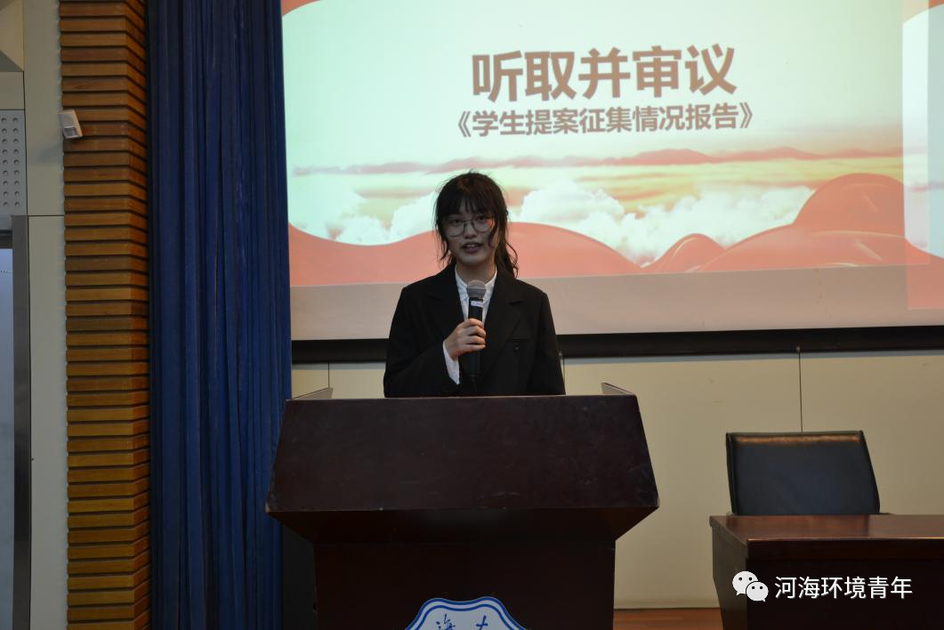 院学生会体育部部长李子瑜同学对本次学生代表大会的提案征集情况进行了汇报,其中就涉及的校园建设、教育教学、校园文化三大方面内容向全体代表做了总结报告。