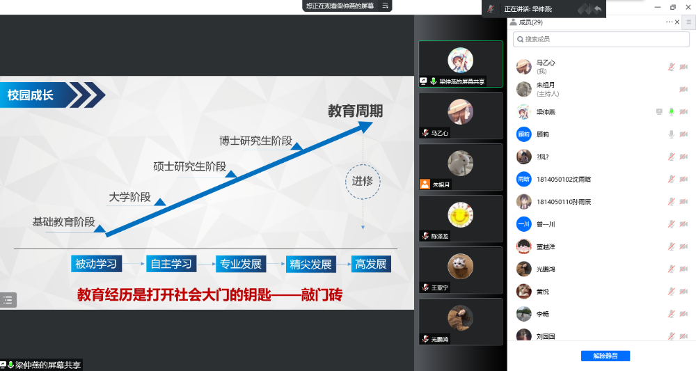 会上,梁主任特别向同学们分享一个观点,即无论是在职场还是8x8x 都要先做人再做事、因事结缘、因人而交,无论什么岗位都要脚踏实地做好自己的本职工作,做事多思考,以最大的热情和细致去对待工作才能走得更远。同时,面对同学们最关心的就业问题,梁主任也从用人单位的角度给出了建议,她指出教育经历是打开社会大门的钥匙,特别是在经历了疫情大考之后各行各业的发展也面临着考验,在用人方面更是精益求精,严峻的就业形式对同学们来说既是挑战也是机遇,只有不断深入了解、分析行业发展需求从而不断提升自身的战斗实力,从被动学习向自主学习转变的过程中以更高的标准要求自己,引导自身朝着专业发展、精尖发展的方向去努力,才能在毕业时拥有更多的选择。