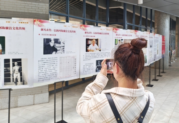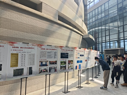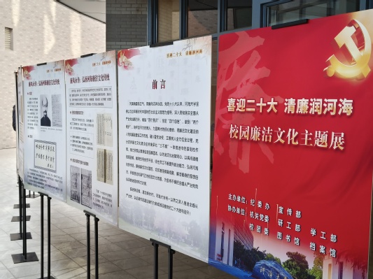 为进一步构建廉洁从教的校园环境,培育学生骨干敬廉崇洁的价值观念,把廉洁文化融入到学生思想道德建设工作中。2022年10月14日,由8x8x 纪委办、宣传办主办,机关党委、研工部、学工部、校团委、图书馆、档案馆协办的“喜迎二十大 清廉润河海”校园廉洁文化主题展于图书馆开展。2022级各班骨干代表集体赴展参观学习。