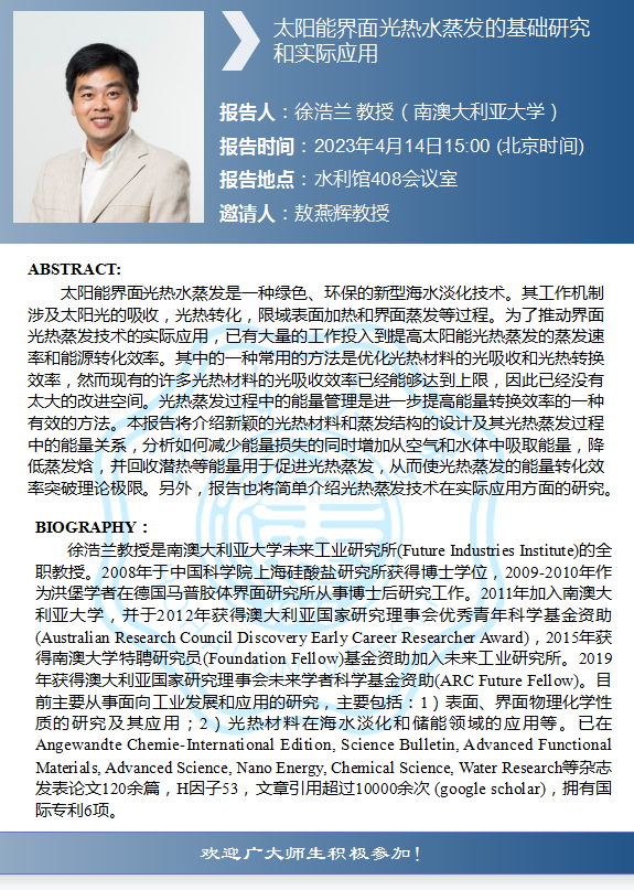 8x8x 学术报告:太阳能界面光热水蒸发的基础研究和实际应用