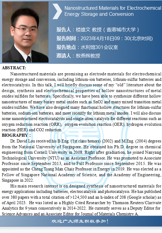8x8x 学术报告:Nanostructured Materials for Electrochemical Energy Storage and Conversion