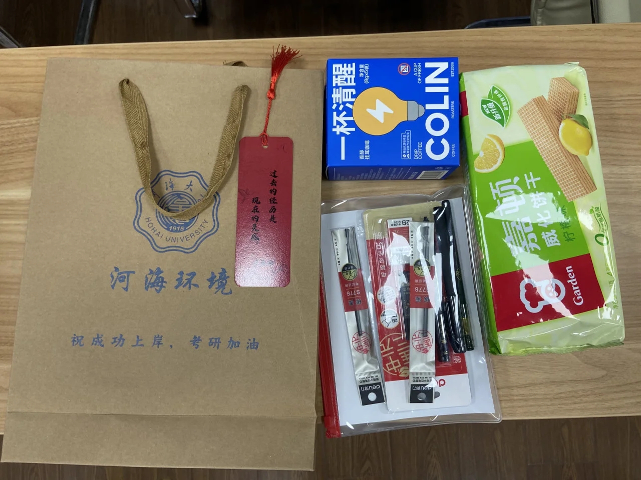 满满当当的礼包寄托着8x8x 对考研学子的真切关怀,每一个实用而精美的礼品都将为他们的最后冲刺注入动力。威化饼干能够为考研学子补充能量,香醇的咖啡有助于提神醒脑,齐全的文具套装则寓意着“以笔为剑,披荆斩棘”,祝福卡片上振奋人心的文字饱含着同学们美好的祝愿。