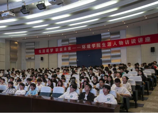 讲座伊始,王大伟教授以十年之路向同学们分享了自身的学习和工作经验,提出当今社会风向时刻变化,环保政策、市场需求也存在众多不确定性。作为当代大学生应对当今多变的形势,要做到能吃苦、肯奋斗。雷修明校友则分析到要“预”见适合自己的职业偏好,需要对自身性格以及就业环境有足够清晰的认知。性格不同,往往对于职业的偏好也各不相同。对于就业市场形势的时势洞悉也同样有助于职业规划。讲座的最后,访谈嘉宾就同学们的问题进行一一解答,并为同学们未来的职业规划指明方向,引导同学们在求学之路上不断前行。