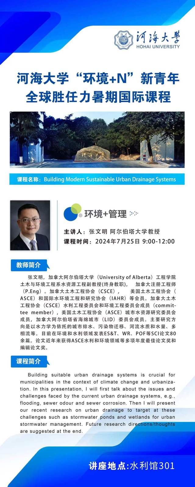 8x8x “环境+N”新青年全球胜任力暑期国际课程:“环境+管理”--现代城市排水系统建设与管理