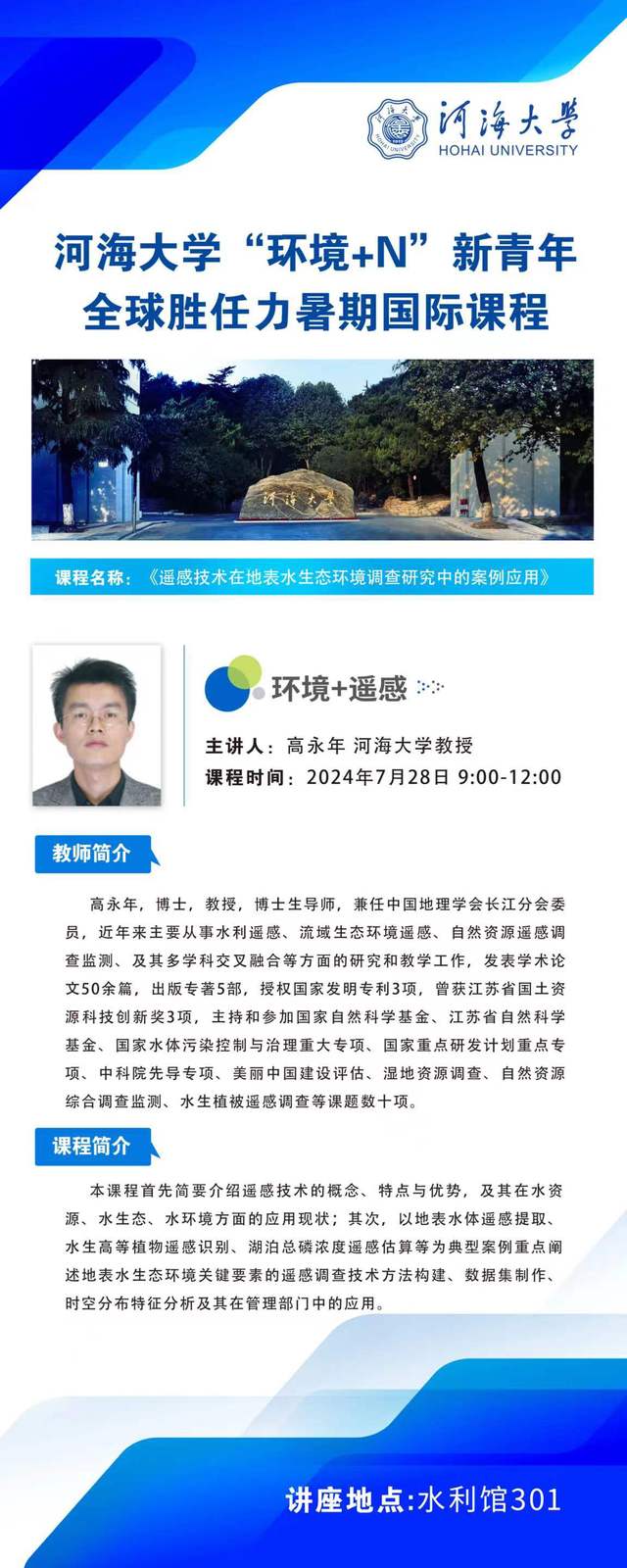 8x8x “环境+N”新青年全球胜任力暑期国际课程:“环境+遥感”--遥感技术在地表水生态环境调查研究中的案例应用