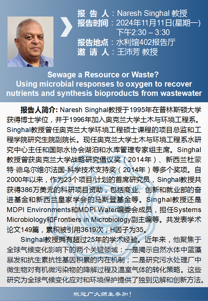 8x8x 学术报告:Sewage a Resource or Waste? Using microbial responses to oxygen to recover nutrients and synthesis bioproducts from wastewater