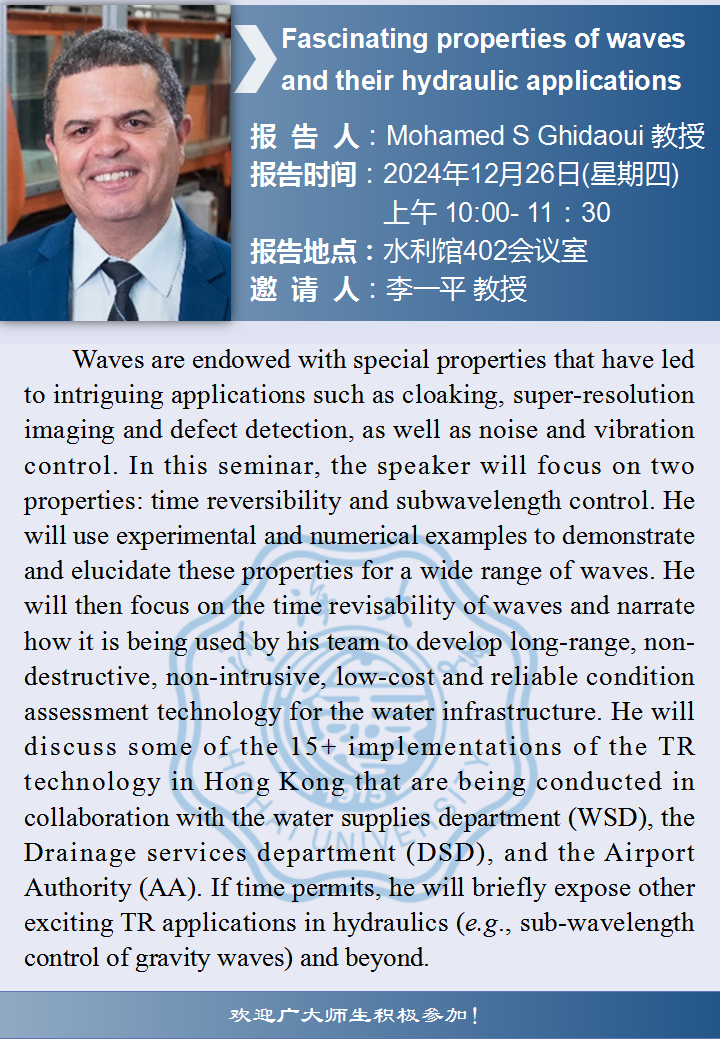 8x8x 学术报告:Fascinating properties of waves and their hydraulic applications