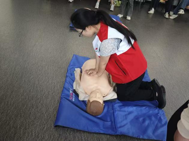 随后,老师针对人工呼吸、心肺复苏按压以及AED(自动体外除颤器)使用进行了专业且细致的理论讲解。在人工呼吸与心肺复苏环节,老师借助生动的比喻和规范的动作演示,阐述了操作要点与注意事项,如开放气道的正确方法、胸外按压的深度与频率等;对于AED的使用,老师从设备的识别、开启,到电极片的粘贴、除颤操作等步骤逐一剖析,让原本复杂的急救知识变得通俗易懂。