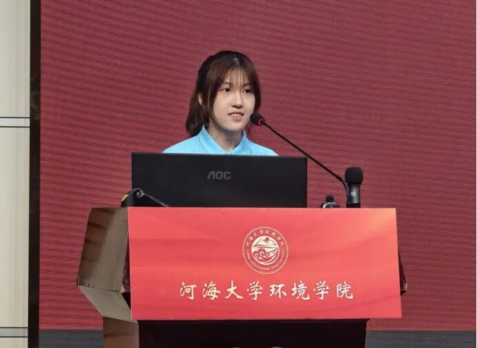 新生代表郑思乐同学表达了自己初入大学的美好愿景,她表示作为新时代的水之子,应有敢为天下先的勇气,同时具备实干精神,向上生长,向下扎根,从水环境保护到生态修复,再到人与自然和谐共处,迈出属于自己的步伐。她相信:奋斗是青春最靓丽的景色。